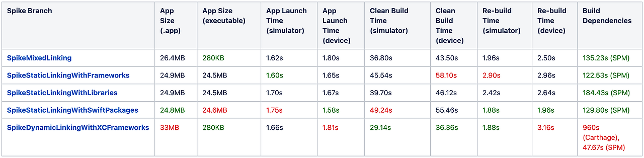 | Cocopods (Dynamic Linking) | Tuist (Static Linking) | Tuist Cache 3rd Parties (XCFramework) | |